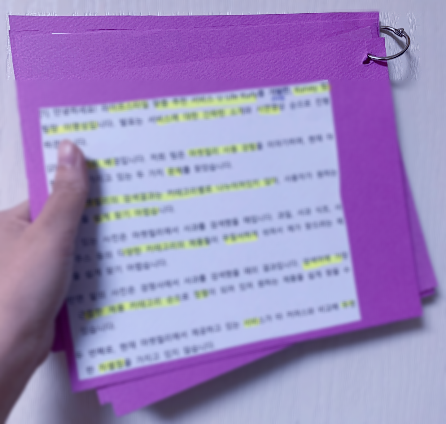 최종 PT 발표자는 내가 맡았다. 제출한 PT 자료를 내가 만들었기 때문이기도 하고, SSAFY에서 프로젝트 발표를 몇 번 한 경험이 있어, 내가 맡기로 했다. 3분 내로 발표를 마쳐야 하기 때문에, 실수하지 않으려 큐카드를 들고 거의 하루 종일 거울 앞에서 발표 연습을 했던 것 같다. 추가적으로 팀원들과 함께 예상질문을 만들고, 그에 답변하는 연습도 했다.