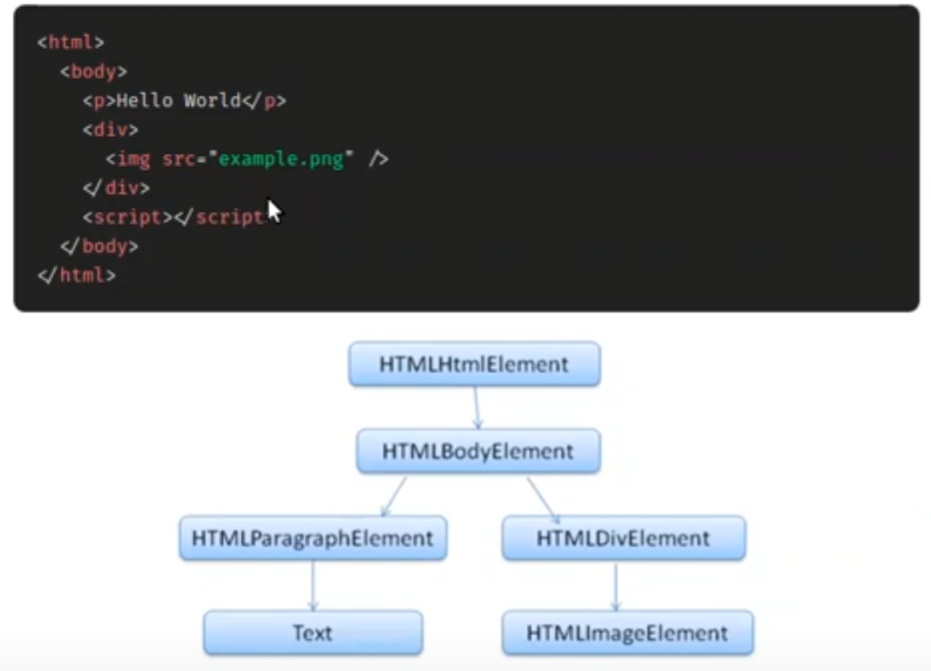 : HTML은 마크업 랭귀지이므로 정보를 표시할 수만 있다. 그래서 프로그래밍 언어로서의 동작이 불가능하다. 이를 가능하게 하는 것이 DOM 트리를 생성하는 것이다. 즉 html 태그가 파싱돼 DOM 트리가 생성되면 자바스크립트가 동적으로 html 태그를 움직일 수 있게 되는 것이다.(사용자와 상호작용이 가능해지는 것!)