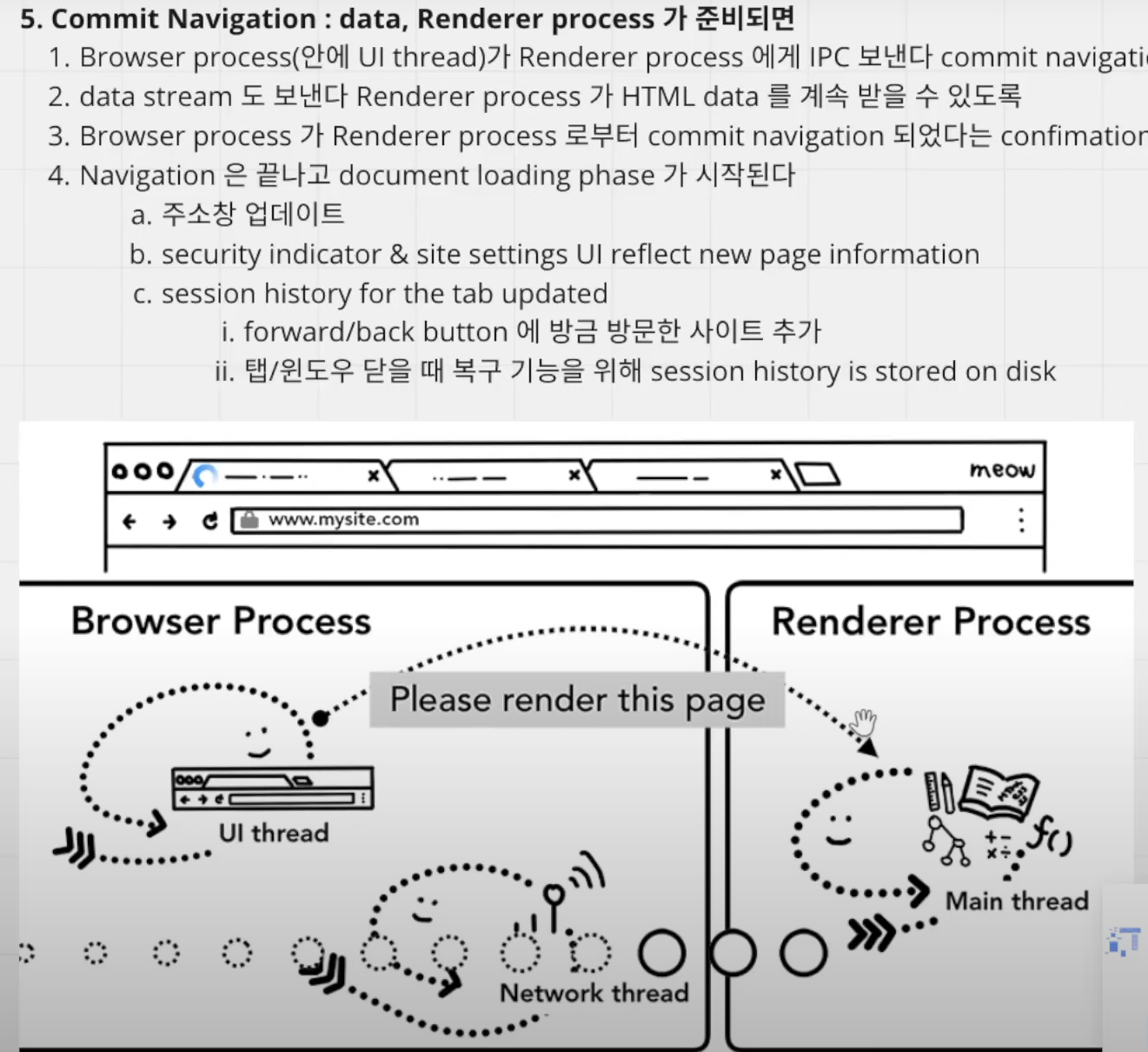 5. Commit Navigation: data, Renderer Process 준비되면 발생(=렌더링 준비 직전 발생.)