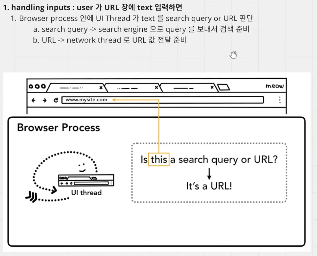 Browser Process 안의 UI Thread가 유저가 url 창에 text 입력한 것이 search query(검색어)인지 URL인지 판단