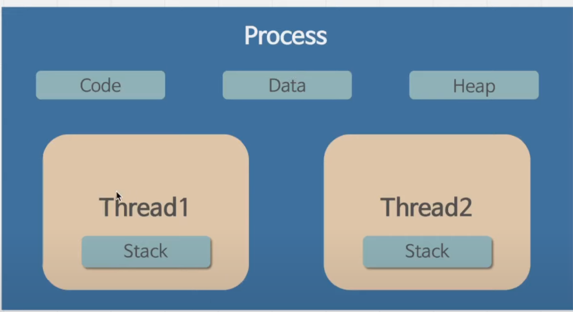 프로세스 내의 스레드가 1개 있는 경우는 싱글 스레드, 스레드가 여러개일 경우 멀티 스레드라고 한다.